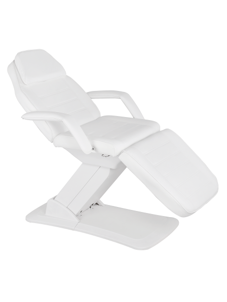 Fauteuil à 3 plans de design fonctionnel et structure très stable. Le Lit de Soins Esthétiques Carla est équipé de 3 moteurs qui règlent la hauteur, l'inclinaison du dossier et celle de l'assise. Les jambes ou repose pieds sont réglables manuellement et les accoudoirs sont amovibles. Pour adapter au mieux vos traitements, les accoudoirs du lit sont pivotants et réversibles. Revêtement en cuir poly uréthane (PU).