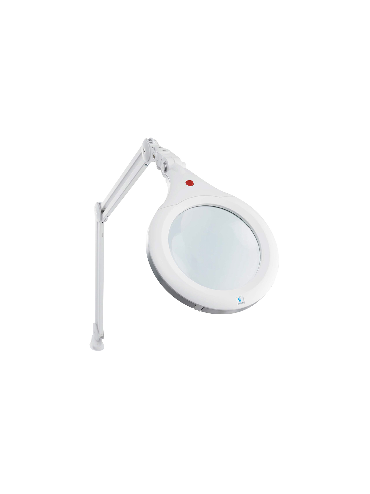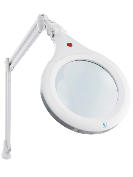 60 LEDs daylight avec 2 variateurs de lumière Rayonnement: 6300 Lux à 15cm Loupe antistatique de 17,5cm avec grossissement de 3 Dioptres (1,75X) Système de changement de loupe Quick Lens Swap System™ permettant son changement en quelques secondes et sans outils Bras et tête renforcés, bougent sans effort et tiennent n‘importe quelle position Longeur maximum du bras: 118cm max